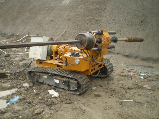 HXY-500履帶式錨桿鉆機(jī)是我公司根據(jù)近年來工程建設(shè)需要而專門生產(chǎn)的一種多功能鉆機(jī)。它是一種機(jī)械傳動、液壓給進(jìn)、履帶行走專門用于工程錨桿施工的新型鉆機(jī),其工藝適應(yīng)性較強(qiáng),使用范圍廣,應(yīng)用于水文水井鉆進(jìn)、堤壩注漿、樁基孔工程鉆進(jìn),也可應(yīng)用于地表和坑道通風(fēng)、排水工程施工,對固體礦床進(jìn)行金鋼石鉆進(jìn)和硬質(zhì)合金鉆進(jìn)。預(yù)留卷揚(yáng)機(jī)安裝空間,以實現(xiàn)工程及地質(zhì)鉆進(jìn)的不同需要,動力系統(tǒng)可根據(jù)用戶訂貨配備22千瓦電動機(jī)或柴油機(jī)。(見外型圖1)