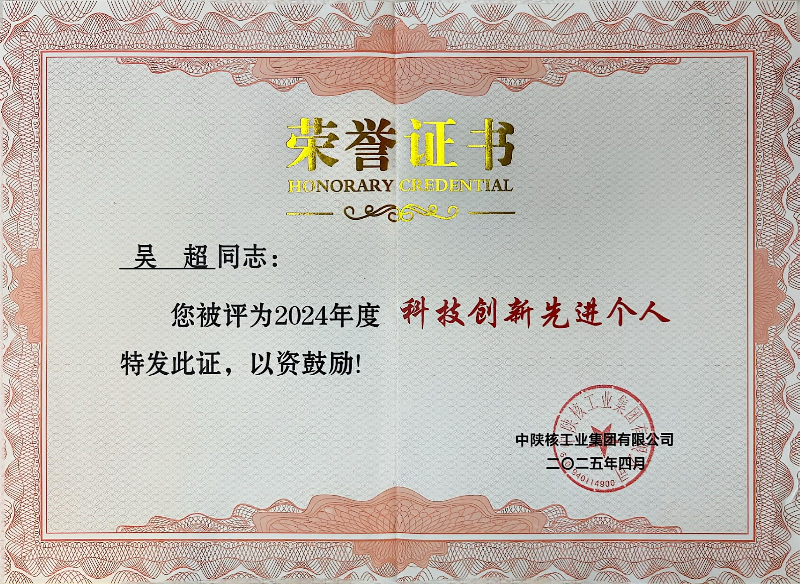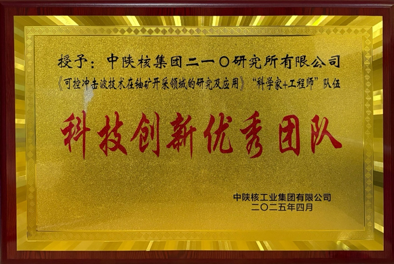 近日,中陜核集團公布2024年度科技創新表彰名單,二一〇所榮獲“科技創新先進單位”榮譽稱號,《可控沖擊波技術在鈾礦開采領域的研究及應用》“科學家+工程師”隊伍摘得“科技創新優秀團隊”獎項,技術項目負責人吳超被授予“科技創新先進個人”稱號。