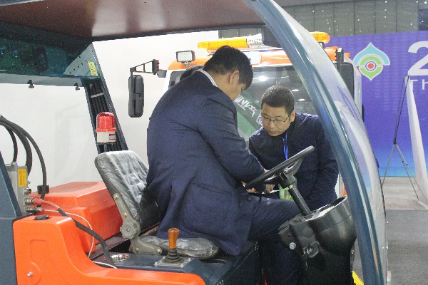 核昌公司展位的精心布置和出色的產(chǎn)品設(shè)計吸引了廣大參展客商駐足觀看,客商們不但可以觀看清掃車實地操作視頻,還可以通過與工作人員互動去了解產(chǎn)品性能,展會現(xiàn)場氣氛十分熱烈。