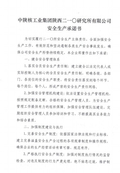 二一〇所安全生產承諾書
