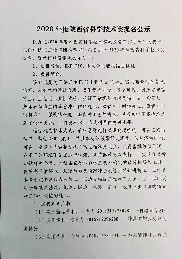 2020年度陜西省科學(xué)技術(shù)獎(jiǎng)提名公示